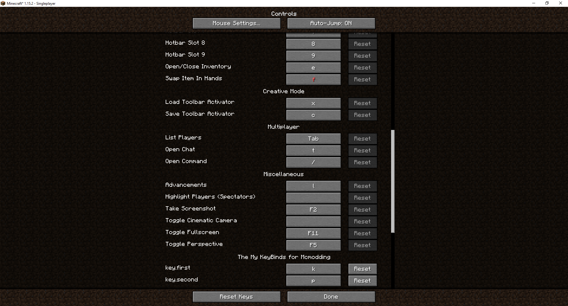 catergory- эта переменная отвечает за название категории в которой, будут находиться наши бинды клавиш.KeyBinding()- в этом классе будет создан бинд с именемket.*name*, клавишейKeyboard.*KEY*в категорииcatergory.