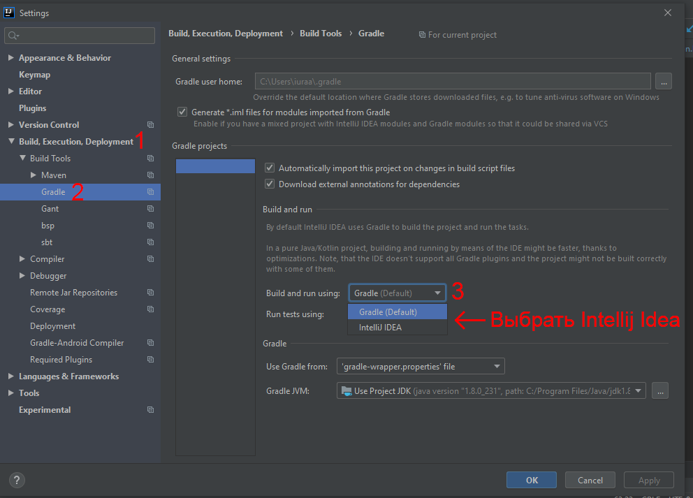 И оно отлично решает проблему. Но, как оказалось, не всегда и не у всех. После обновления от 19 года, идея стала использовать сборку граблей, а именно "раскидывание" ресурсов и классов по разным папкам. Ранее данная "фича" не была введена и всё забрасывалось идеей в одну папку. Чтобы исправить это, надо лишь изменить сборку и запуск с Gradle на IDEA: